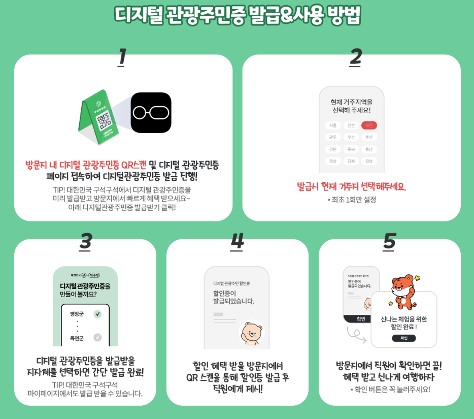 디지털 관광주민증의 사용 방법은 다음과 같습니다: