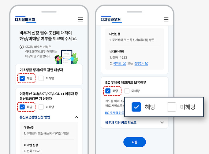 디지털 바우처 신청 자격은 다음과 같습니다: