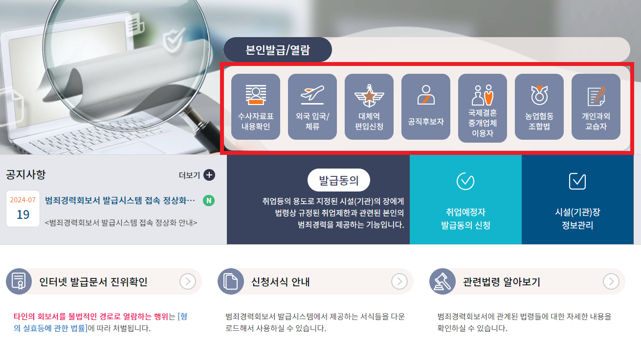 범죄경력회보서 발급 방법은 다음과 같습니다.