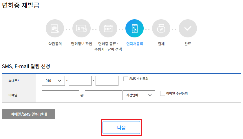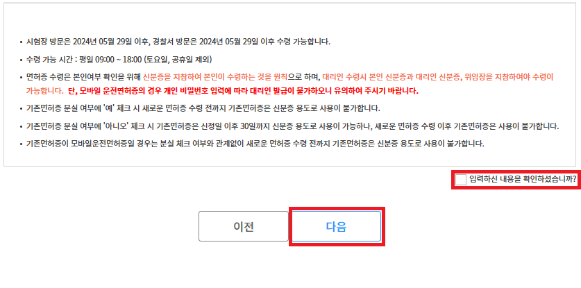 6. 면허증 종류, 수령방법, 날짜 선택