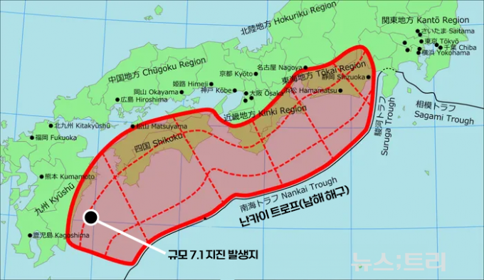 난카이 대지진은 도카이 지진과 동시에 발생 할 경우와 난카이, 도카이, 도난카이 3연동 지진이 발생할 가능성도 있어 더욱 우려가 됩니다. 난카이, 도카이, 도난카이는 난카이 트로프에 위치해있으며 일본 정부는 난카이 해곡 지진이 30년 이내에 발생할 확률을 70~80%로 보고있습니다. 3연동 지진이 발생하면 교통·물류 인프라 파괴, 공장·생산 시설 파괴로 산업 생산 중단, 금융 시장 불안, 재건 비용, 국제적 영향, 그리고 원전이 잘 못 될 가능성도 있어 우리나라에도 영향을 끼칠것으로 예상됩니다.