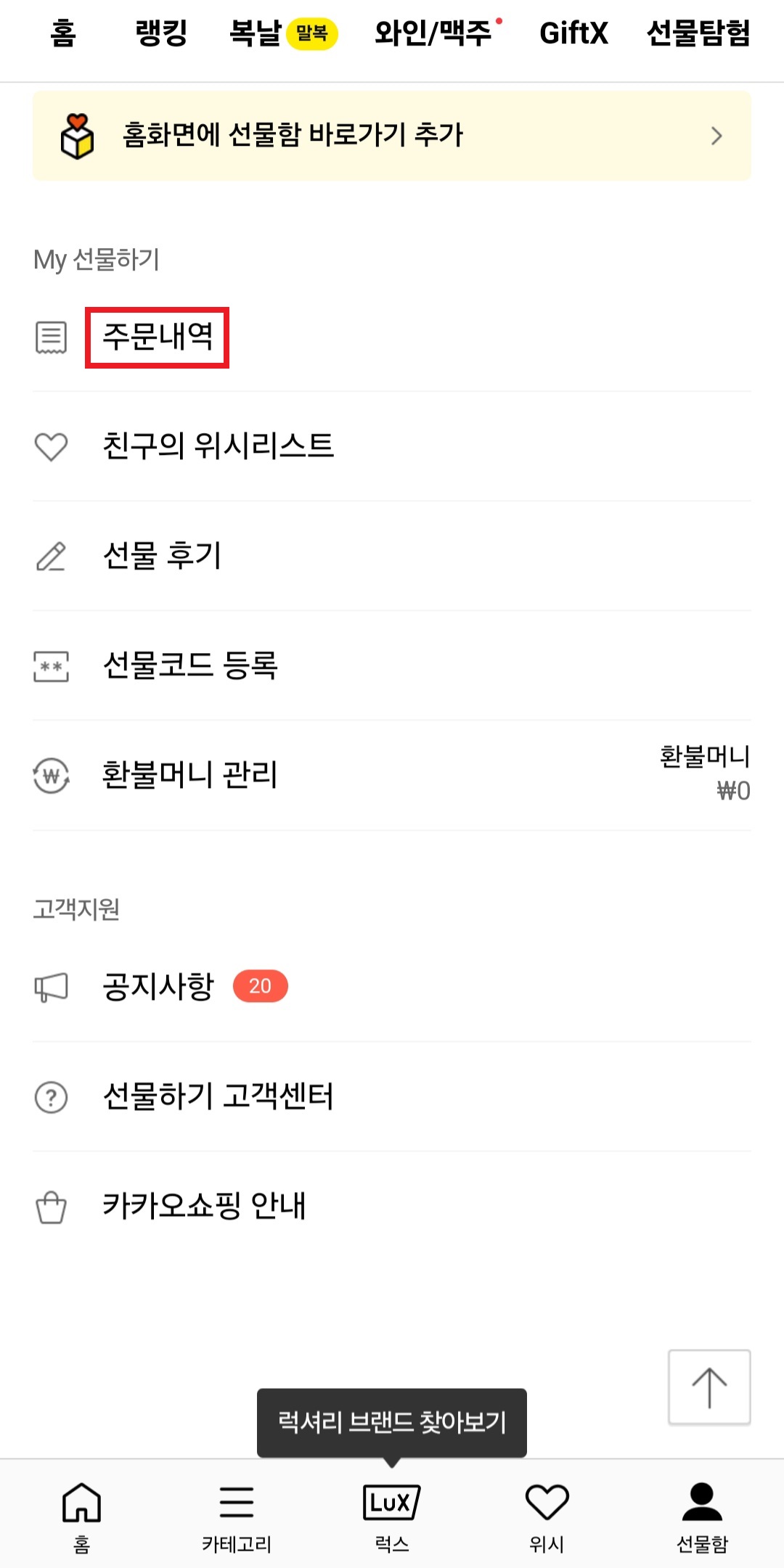 카카오톡 선물하기 환불 방법