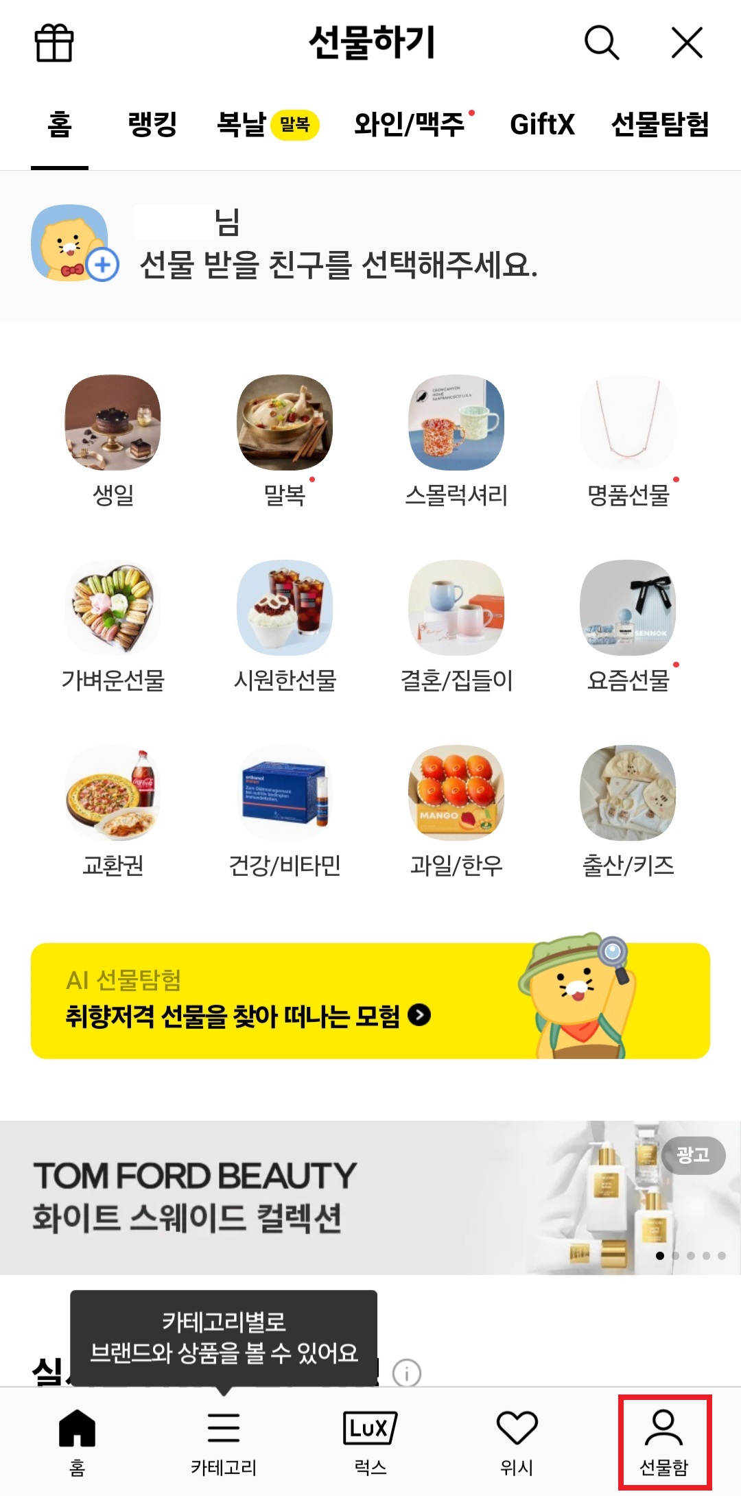 5. 카카오톡 선물하기에서 보낸 환불 안내 카톡을 확인합니다.
