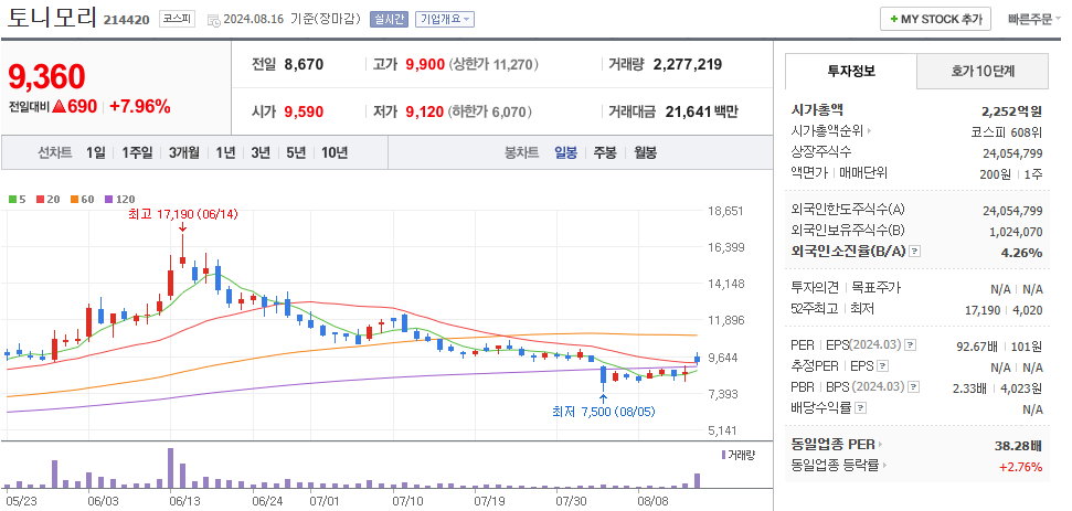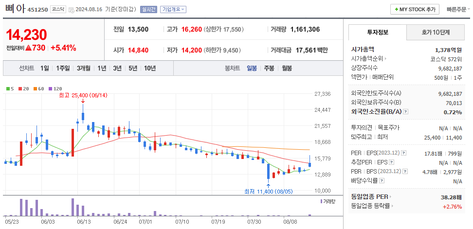 최근 워런 버핏의 투자 소식 이후 주가가 급격히 상승하며 투자자들의 관심을 끌었습니다. 특히 한국화장품제조는 24% 이상의 급등을 기록했으며 한국화장품은 14.17%가 올랐습니다.
